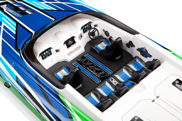 M41 Widebody è fornito di una carena altamente resistente, il sistema brevettato "Traxxas Stability System" per facilitarne il controllo e migliorarne la stabilità, un regolatore programmabile con inclusa una modalità di retromarcia e compatibilità con upgrade quali il Traxxas Link per visualizzare la telemetria della tua barca sul tuo smart phone!